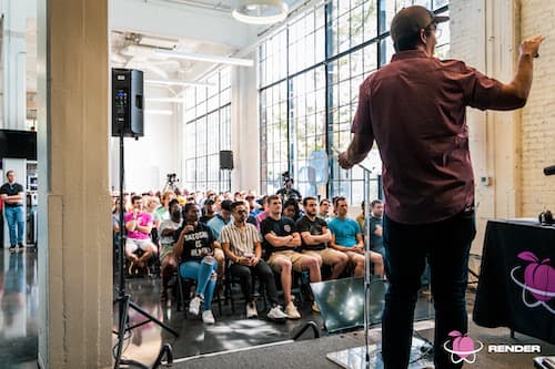 That means there's more room for you to cha-cha slide with all of your sponsored merch alongside your favorite speakers and attendees without having to put down your full plate of food. Get ready for three floors of code, culture, and connections at RenderATL 2023.